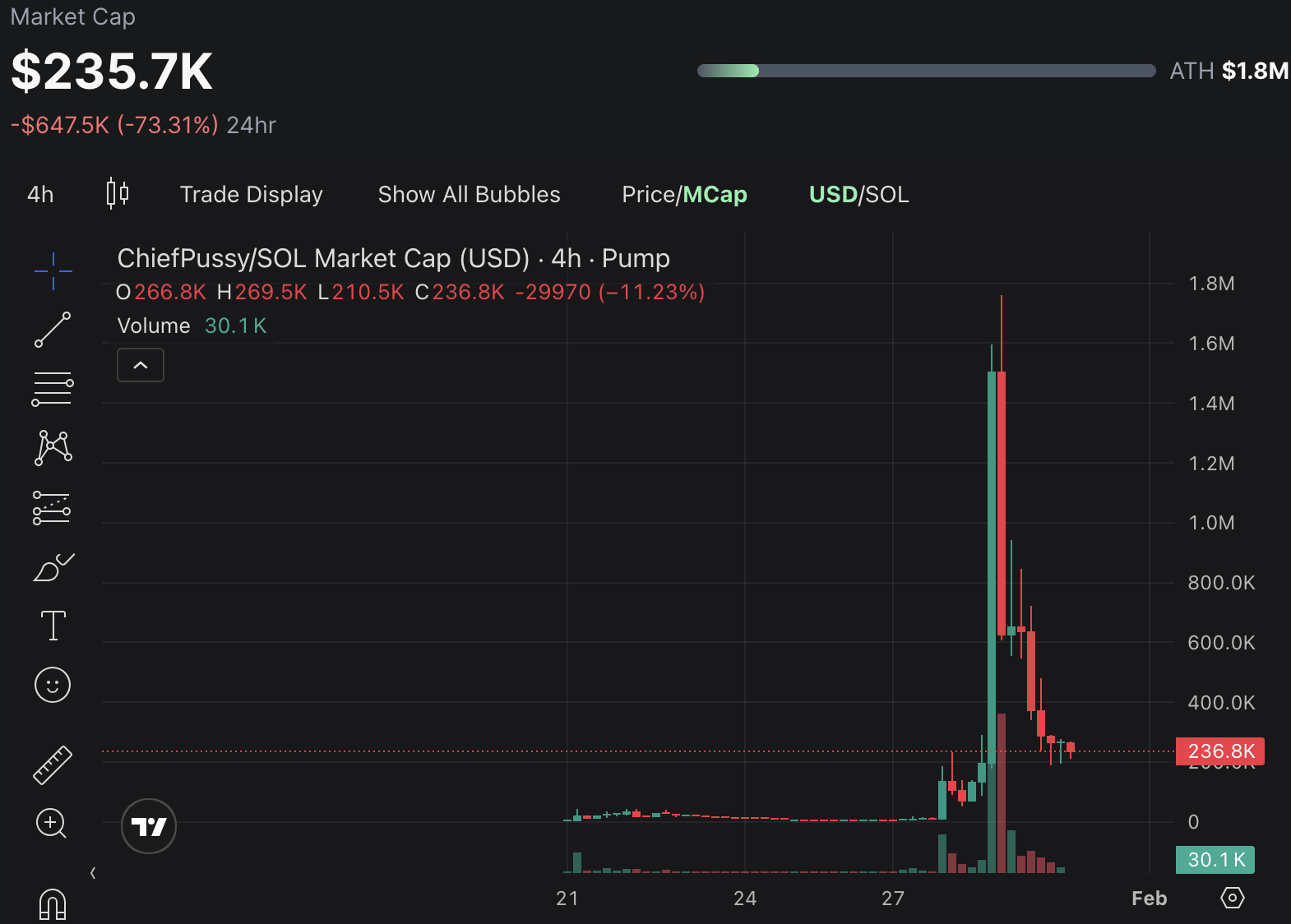 Since this high, however, it’s fallen in typical memecoin fashion by almost 89% in one day to a market cap of $246,000.