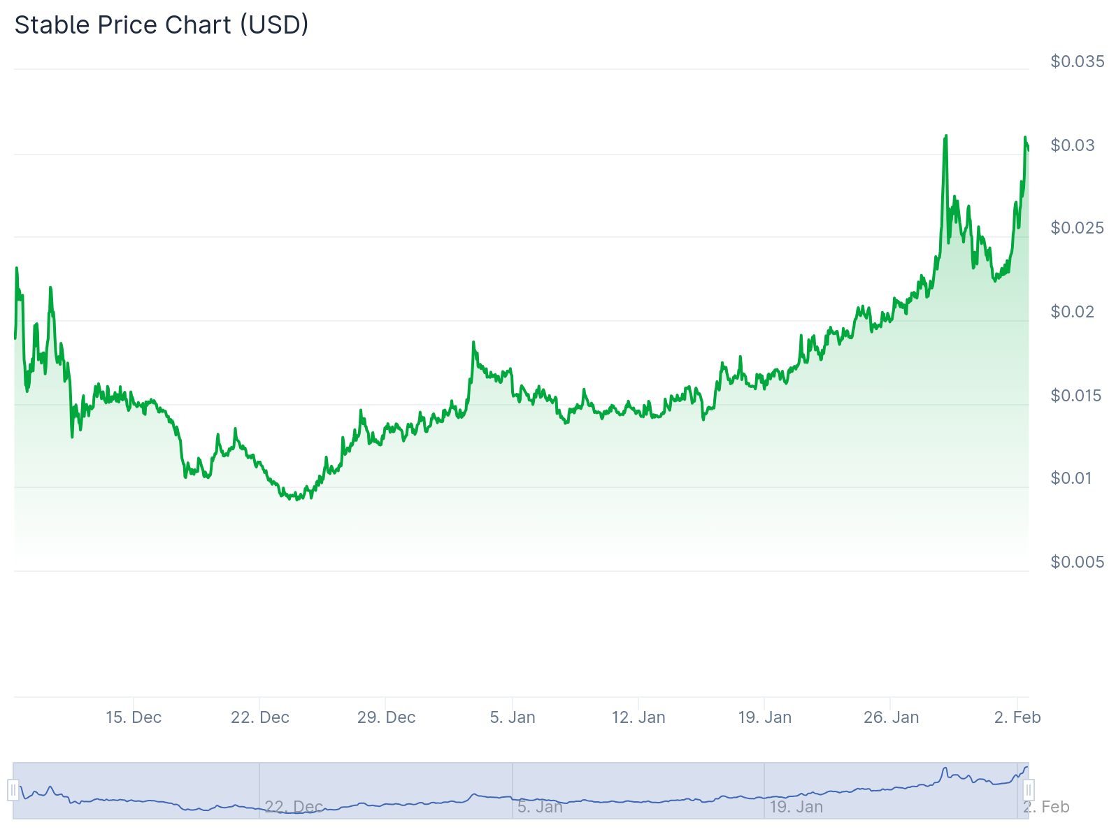 $STABLE is up 43% this week, tapping an all-time high of $0.03 per token on Jan. 29 and Feb. 2.
