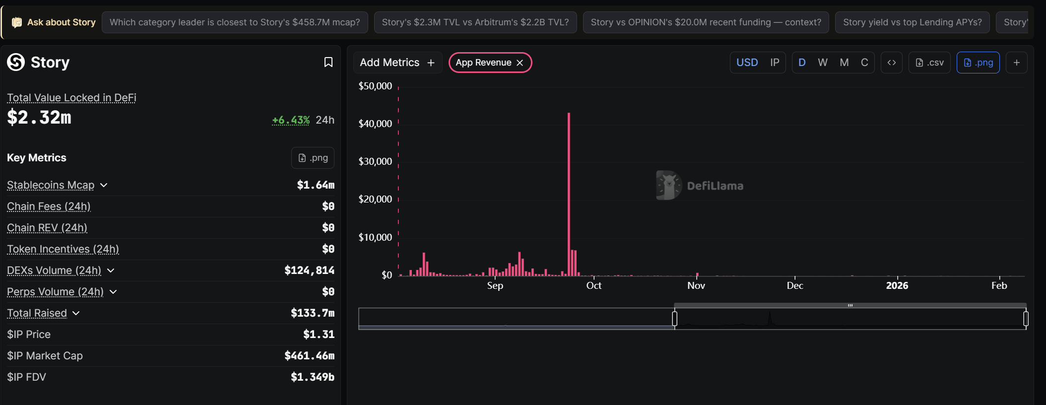 Story's daily revenue, which peaked at $43,000 in September 2025 and is currently $0 per DeFiLlama, has also been a concern for many investors.