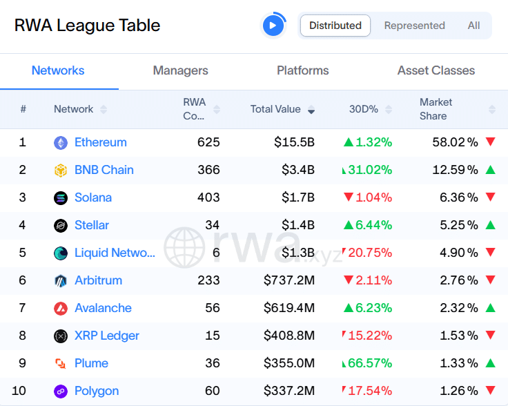 - With this figure, the ledger accounts for 1.53% of the total global distributed RWA value.