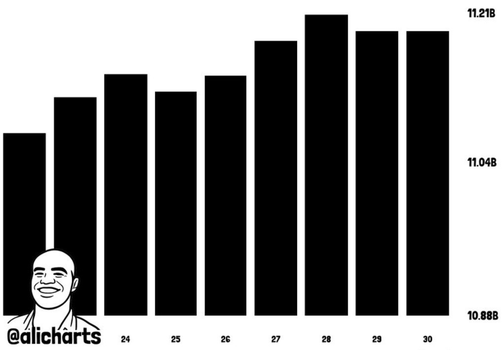 During this period, the whale balances surged by more than 120 million tokens and peaked on Saturday, March 28, with holdings of nearly 11.21 billion tokens.