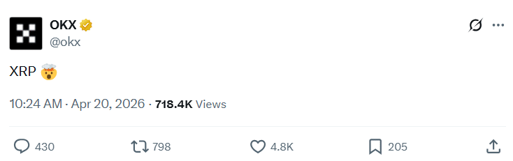 On April 20, the exchange shared a short message showing $XRP alongside a “mind-blown” emoji, without giving any extra details. Despite the simplicity, the post has since spread across the crypto space, resulting in discussions within the $XRP community.