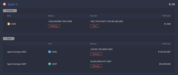 However, “DeFi Superman” Sun Ge has cumulatively deposited $1.3 billion in assets into the platform. According to data, USDS farming rewards reached as much as $5.38 million.
