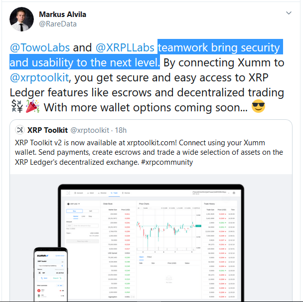 CEO Markus Alvila said the upgrade was achieved by a joint effort of Towo Labs and XRPL Labs.