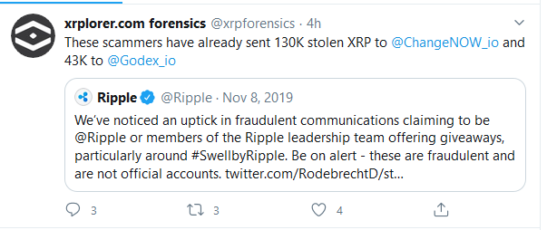Scammers in Action, Send 130,000 XRP to ChangeNow & 43,000 to Godex