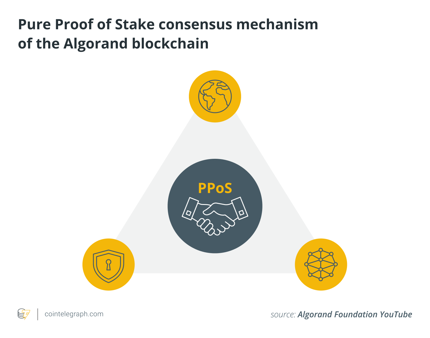 Algorand addresses the common issues that most older blockchains have, specifically concerning scalability and consensus. The blockchain uses Pure proof-of-stake (PPoS), a consensus protocol that selects validators at random according to the weight of their stake in ALGO coins.