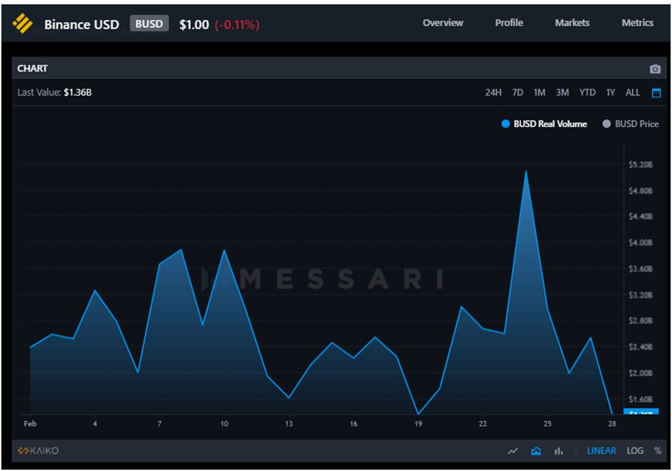 While USDC managed $49 billion in February volume, Binance USD (BUSD) managed to record approximately $74 billion.