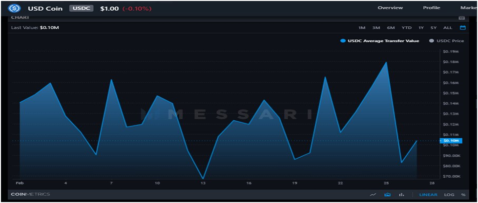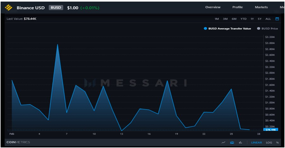 Although USDC recorded 4,900% more in total transaction counts in February than BUSD, their average transaction value was relatively lower.