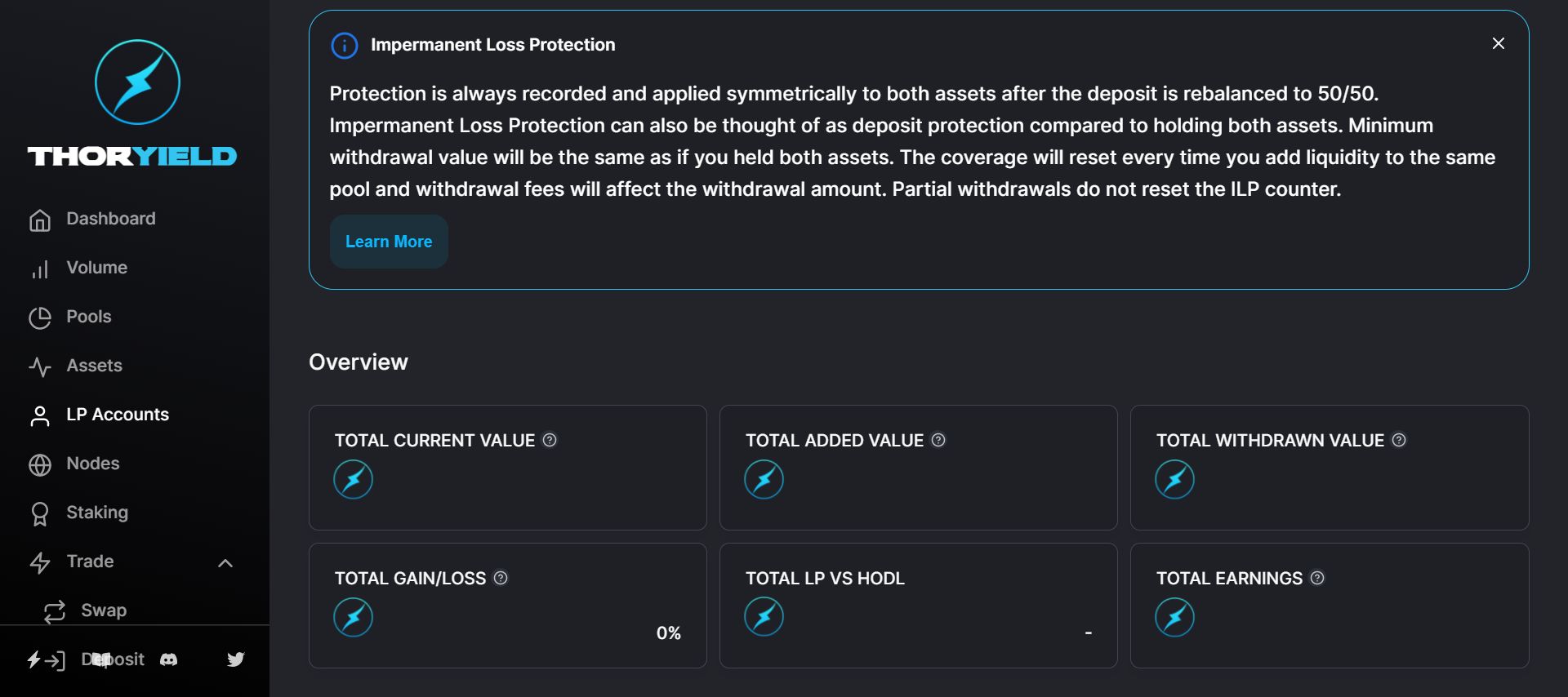 There are two different ways to see how you are doing in the pool. In THORYield, you can see an overview of the BTC pool.
