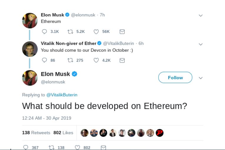 Moments later, Buterin invited Musk to attend the blockchain project’s event dubbed Devcon in Osaka, which was scheduled for October 2019.
