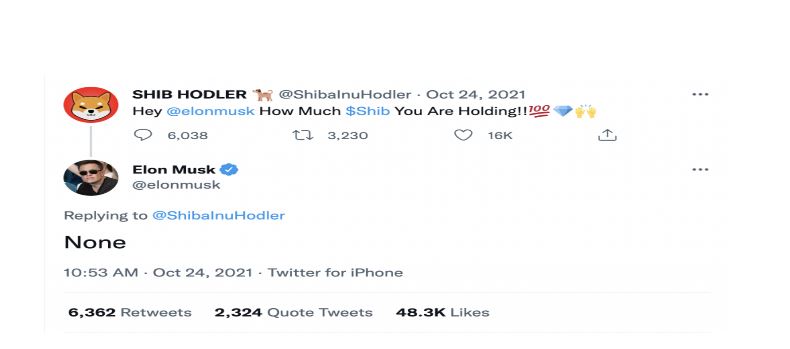 Elon also says he has “None” Shiba Inu.