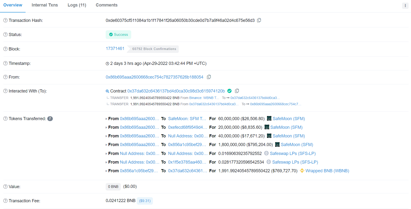 The Safemoon community believed the in-going and out-going transactions to be innocent transactions that included depositing and removing tokens from liquidity pools and payments from Bitmart.