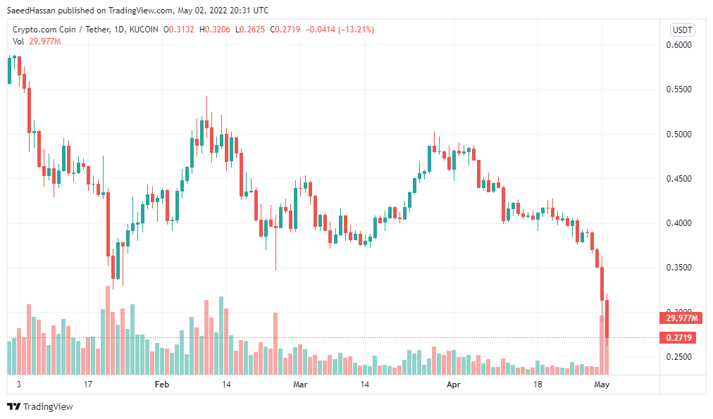 Since the start of January 2022, Cronos has been trading lower. The price of CRO was over $0.50 at the beginning of the year, but it has been retreating since then. At one point, CRO was close to sliding below $0.30. Cronos’ price skyrocketed during the NFL Super Bowl. But after that, there hasn’t been any sign of a recovery as the price of CRONOS crashed continuously.
