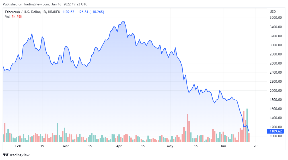 ETH price chart for 06/16/2022 on Kraken | Source: ETH/USD on TradingView.com