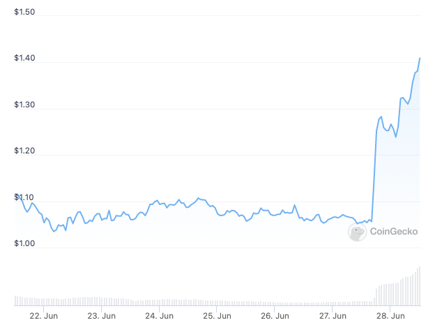 The TON price has immediately reacted to the news, surging 34% over the past 24 hours. The token is trading at $1.41, according to data from CoinGecko.