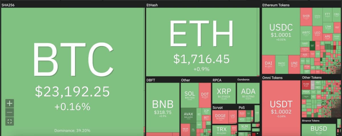 The larger cryptocurrency market showed signs of consolidation over the past 24 hours, as Bitcoin topped up to $23,000 and Ethereum rose past $1,700. Among leading Altcoins, Cardano rose up to $0.51 whereas Ripple jumped up to $0.37. Dogecoin also consolidated around current price at $0.06, whereas Solana moved past the $40 mark with a minor increment.