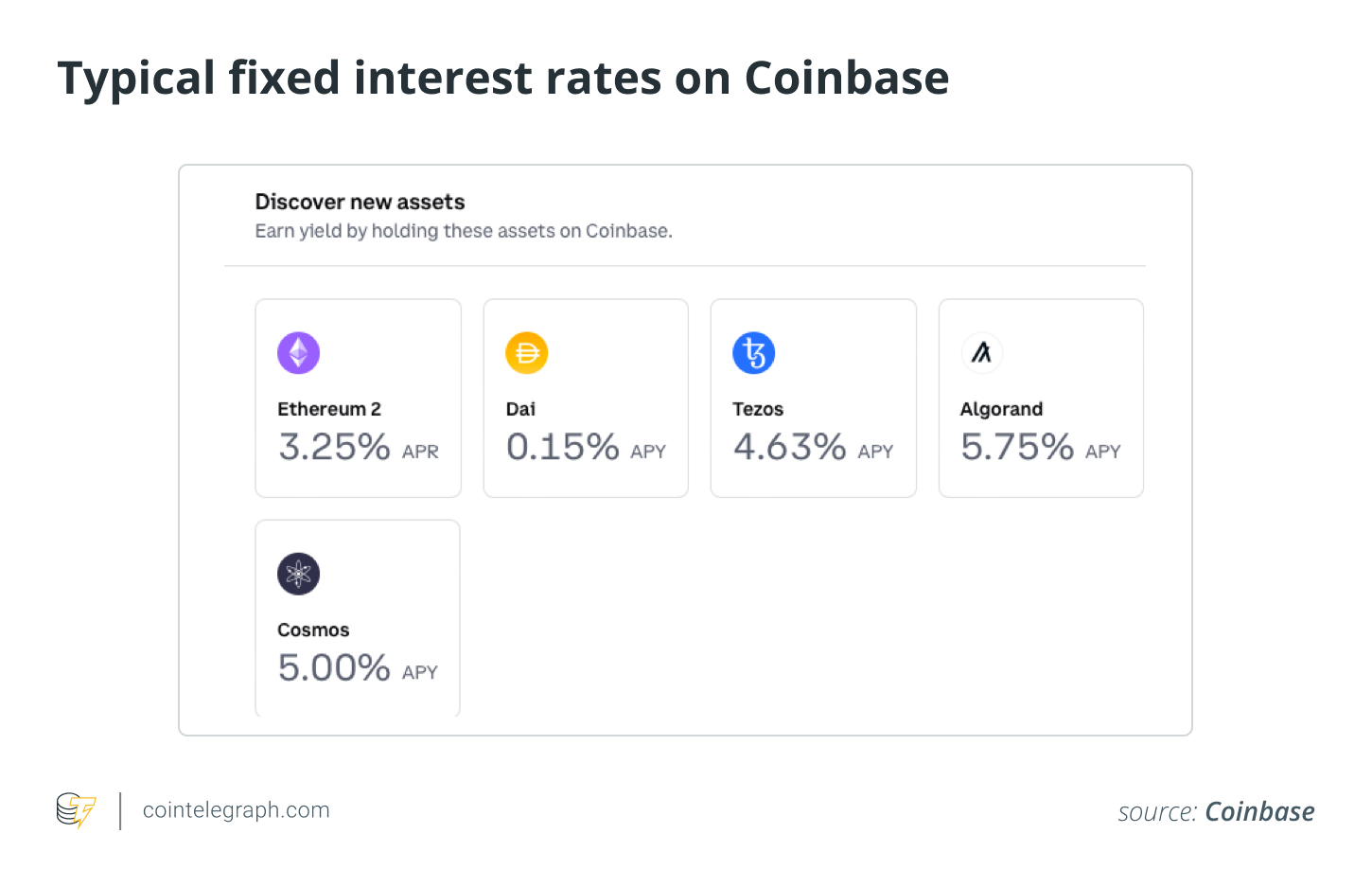 As mentioned, there are plenty of platforms to choose from, including well-established cryptocurrency exchanges like Coinbase, with the following indications of interest rates on fixed savings: