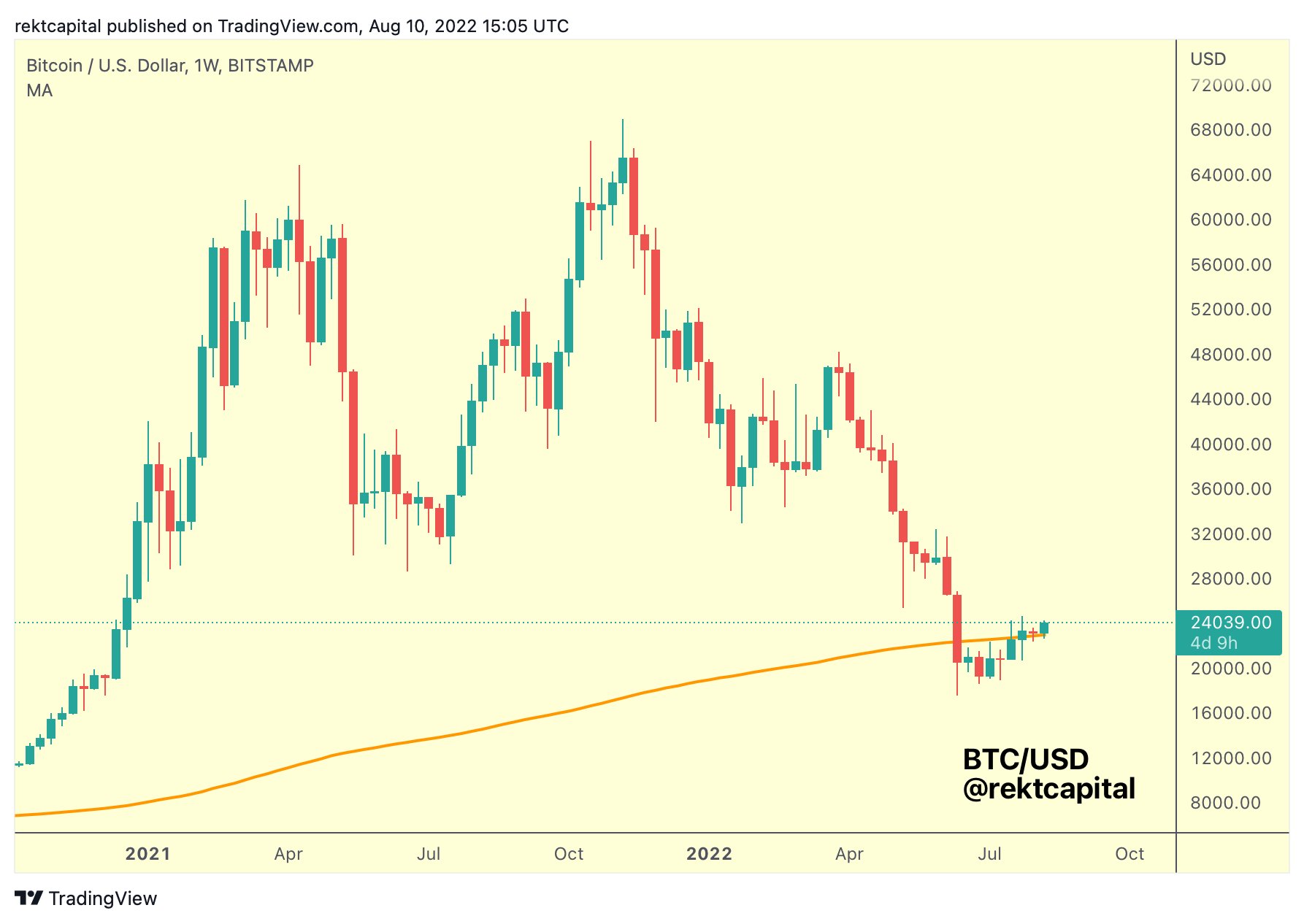 Pseudonymous crypto trader Rekt Capital tells their 326,400 Twitter followers that the king crypto has held the 200-week moving average (MA) for three weeks.