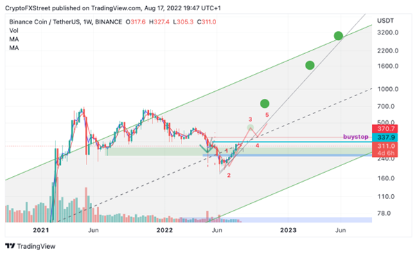 Binance Coin price could qualify as a "crypto-outperformer" amongst its' peers as the digital exchange token has rallied 56% since July 1. When reviewing the technicals, Binance Coin looks extremely promising from a macro perspective and in the short term. Although the crypto community seems to be honed in on Ethereum Merge, Binance could shock sleeping bulls at the wheel and induce a bull rally with jaw-dropping targets.