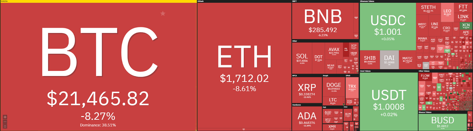 The market has traded with strong bearish momentum over the last 24 hours. The leader, Bitcoin, lost 8.27 percent, while Ethereum over 8.6 percent. Meanwhile, Dogecoin (DOGE) saw an even worse selloff as it lost over 11 percent.