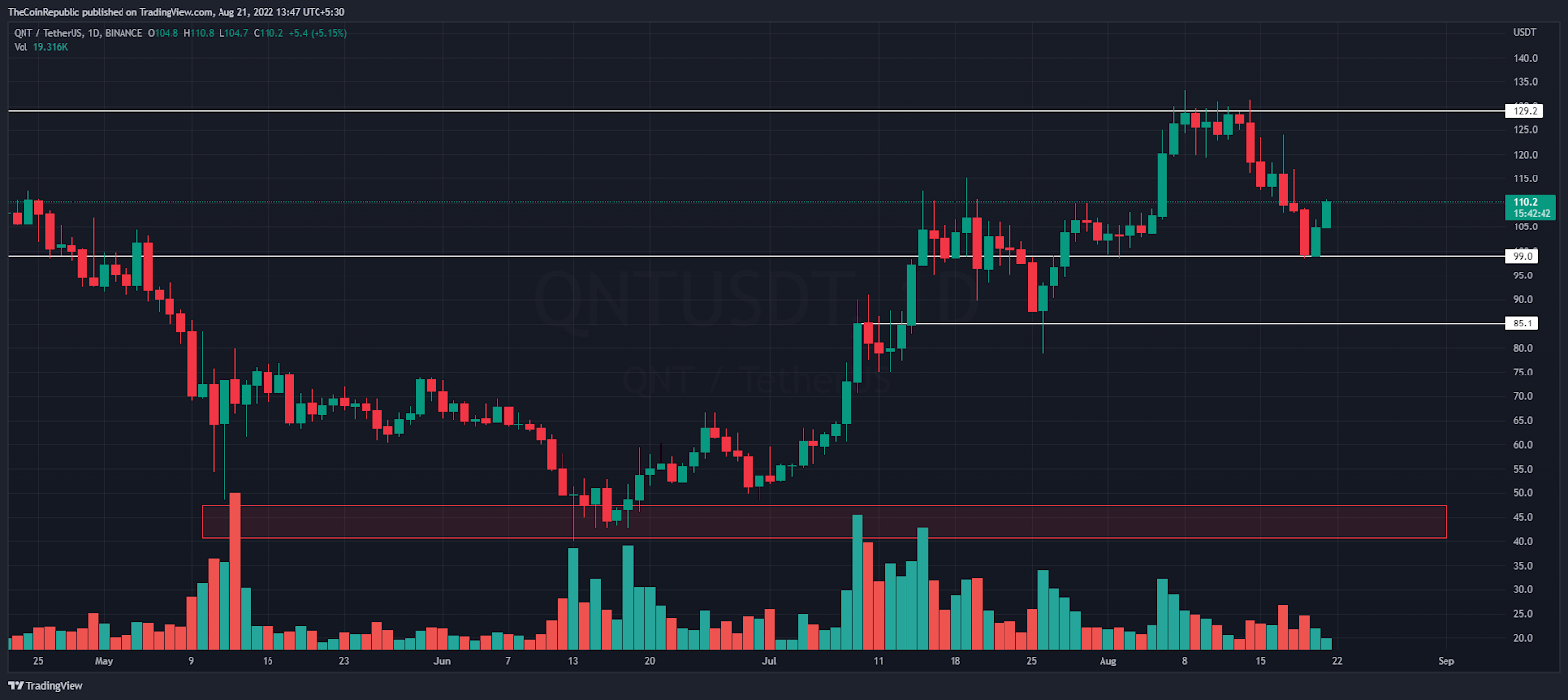 Buyers reached a 90-day high of $133 as the purchasing persisted. Later, the purchasers were unable to maintain the higher zone. Because altcoins are being rejected, QNT is down 7.5% this week. Nevertheless, the QNT coin is now selling at $110 per USDT as of press time.