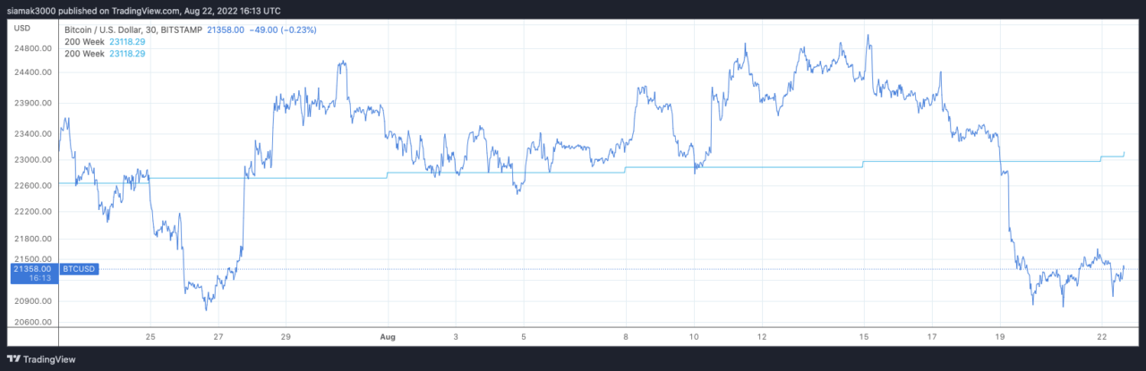 Crypto has also been struggling during the past few days. For example, since last Monday (August 15), the Bitcoin price has gone down from $25,033 to $21,358 (as of 4:13 p.m. UTC on August 22), which is a drop of 14.68%.
