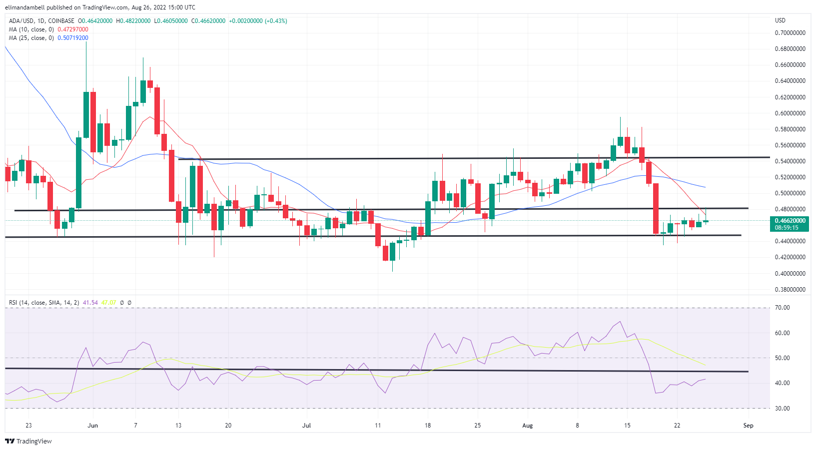 As of writing, ADA is now trading at $0.4765, which is below the previously mentioned price ceiling.