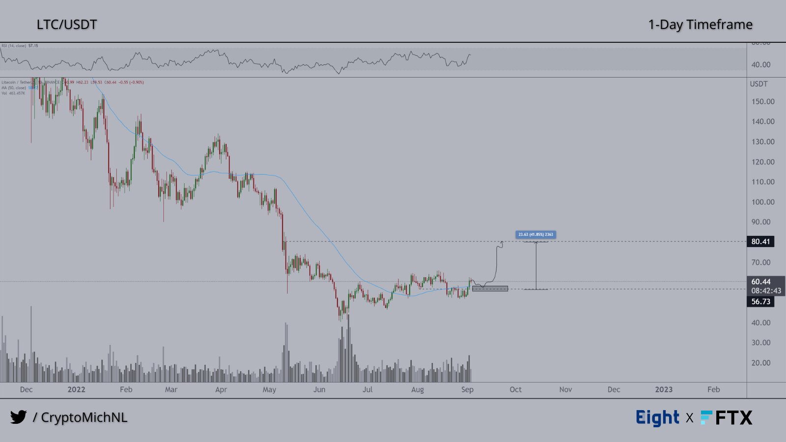 Looking at peer-to-peer payments network Litecoin (LTC), Van de Poppe predicts a slight pullback before the large-cap altcoin potentially launches a 35% surge.
