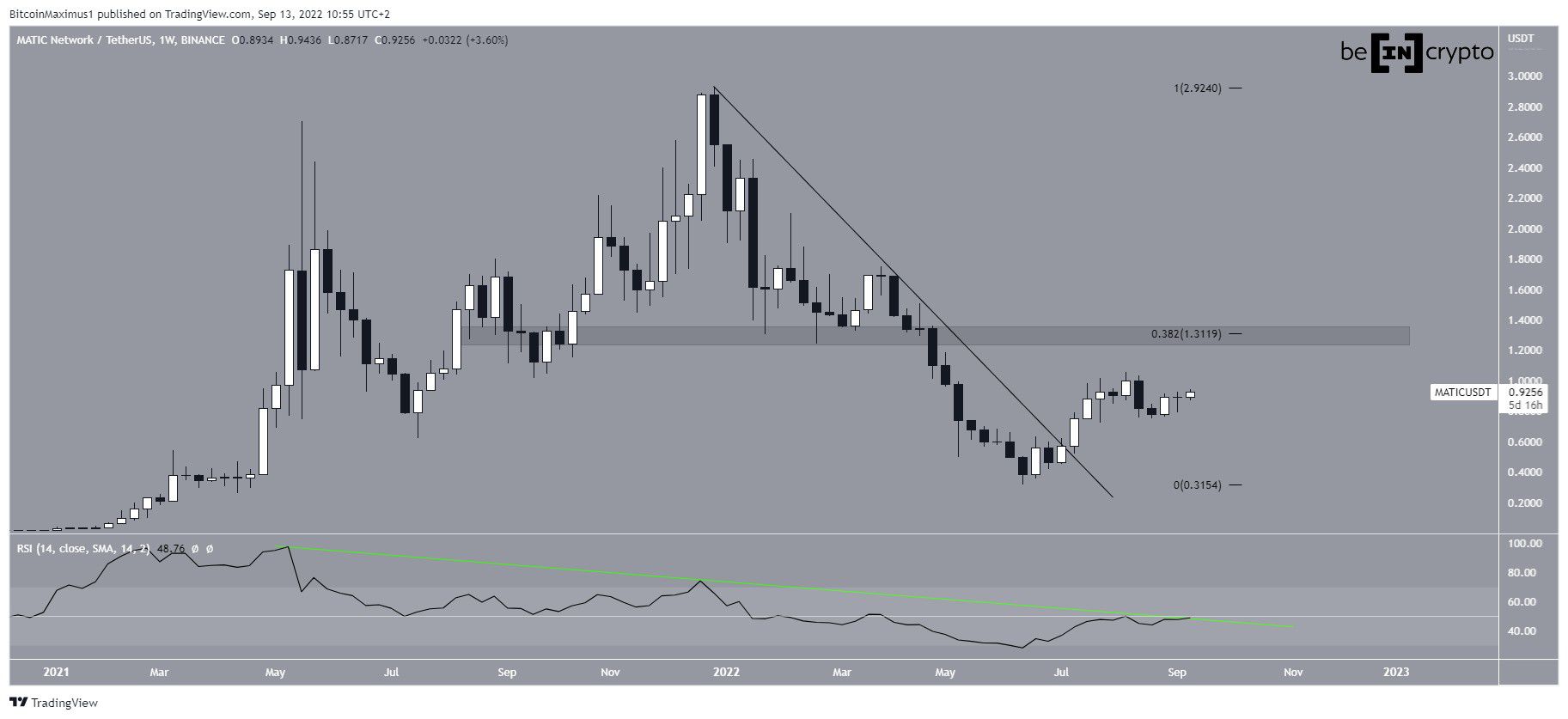 While Polygon (MATIC) has broken out from a long-term descending resistance line, it has yet to clear an important horizontal resistance which would confirm that a bullish reversal is in place.