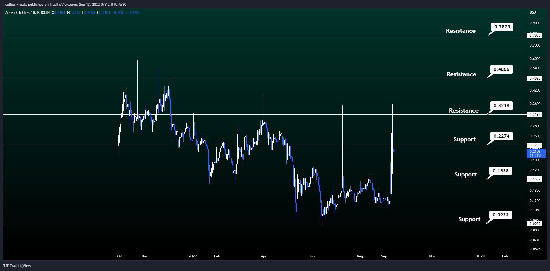 From the above daily time frame, we can clearly interpret the following as the resistance and support levels for Aergo (AERGO).