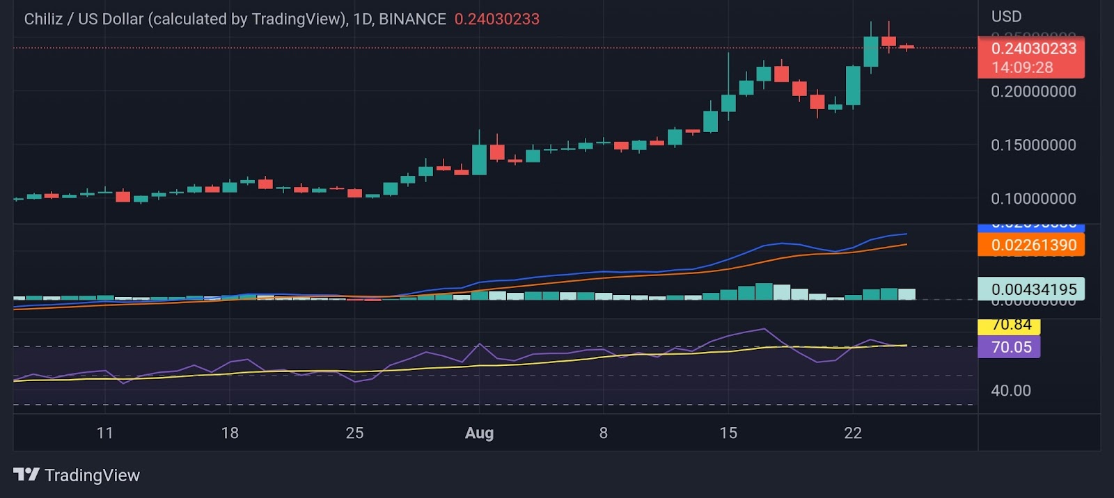 The technical indicators for Chiliz Crypto paint a bullish picture for the near term as the altcoin has battled on amid the increasing selling pressure. Hence, we can expect the Chiliz Crypto Price to continue to soar in the days ahead.
