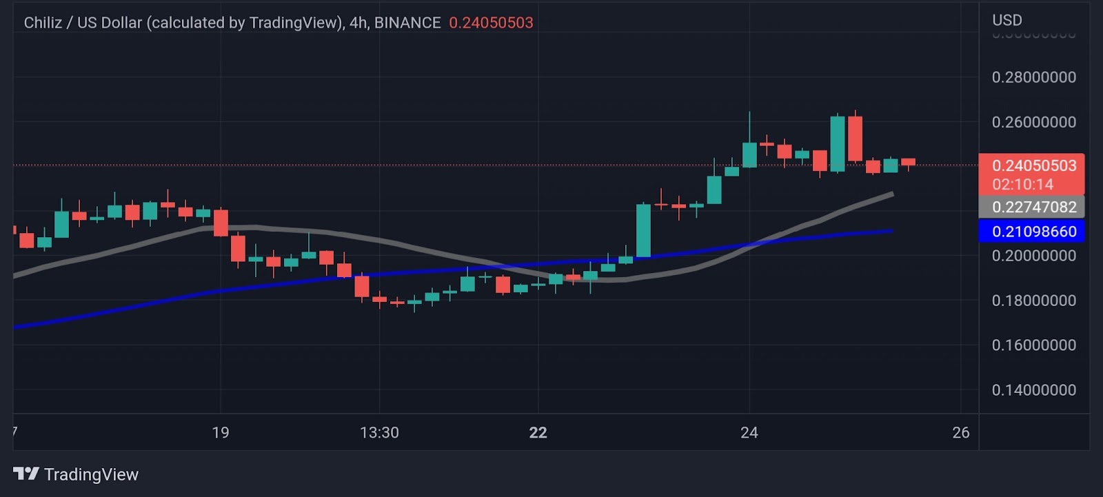 Chiliz Crypto bulls have played a crucial role in limiting the losses amid the wider turbulence that has been going on in the cryptocurrency market. The asset is in an uptrend as the Chiliz Crypto Price is currently transacting above the 20,50 SMA on the four-hour chart. The continuation of the uptrend could take the altcoin above the resistance level placed at $0.30 in the near term. On the other hand, the sellers are attempting to sink the price below the strong support of $0.20. If they succeed, the bearish momentum could pick up and the asset could drop to $0.15 in the near future. However, the chances of that happening appear quite slim as the bulls have stood firm amid the onslaught, and the asset looks primed to continue the uptrend.