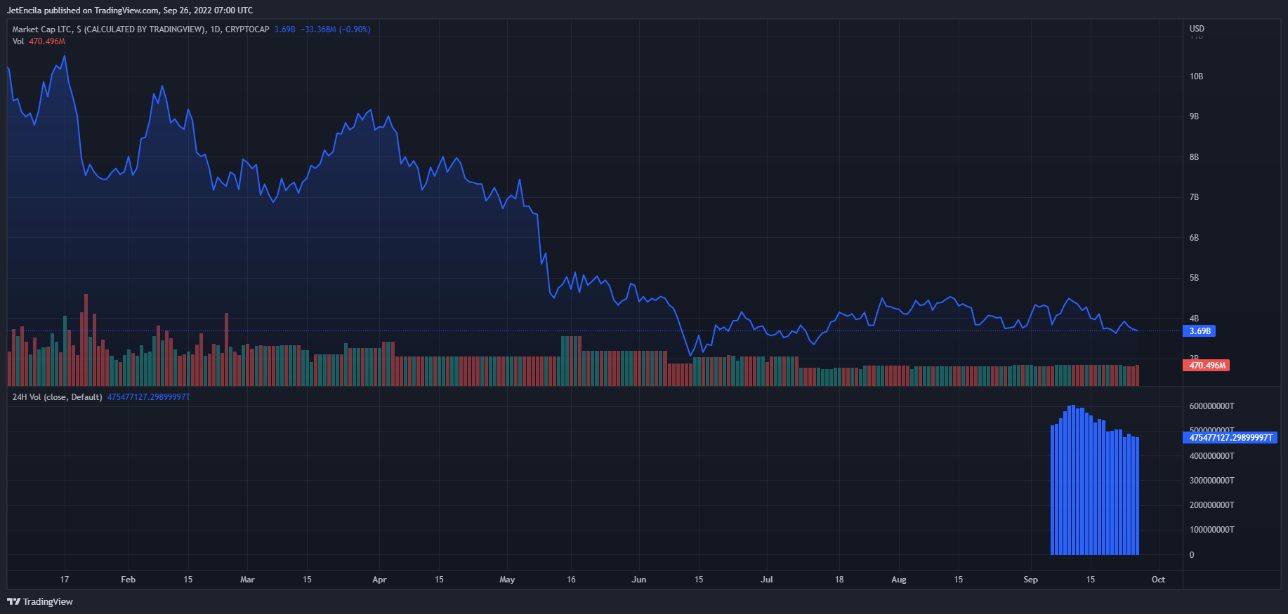 LTC total market cap at $3.7 billion on the daily chart | Source: TradingView.com Featured image from Cryptotelegram, chart from TradingView.com
