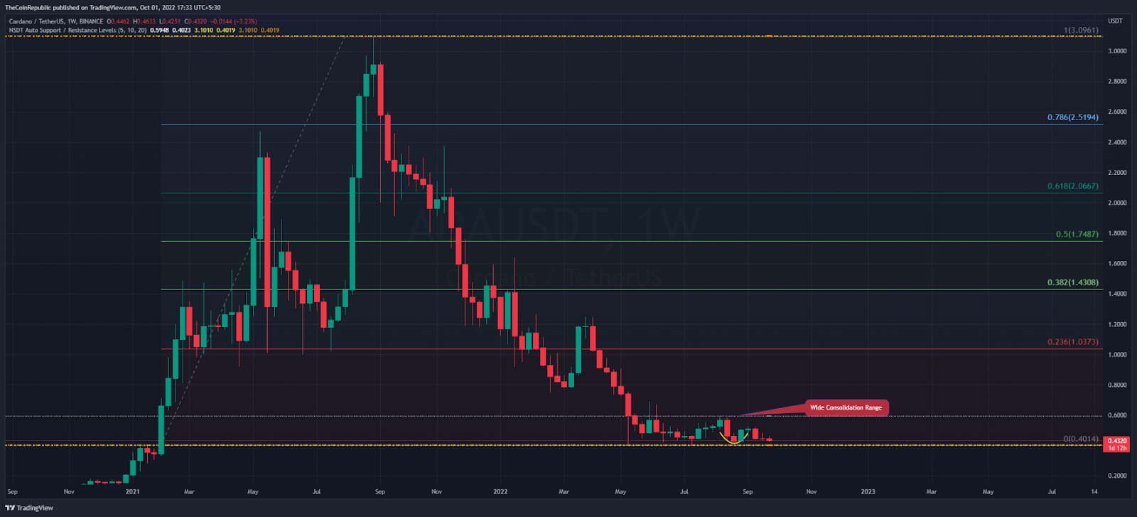 Cardano’s price prediction suggests a consolidation in the price ahead of any price increase, amid weak market sentiment. In fact, speculators have set trading ranges as Cardano price moves under a wide horizontal range of resistance from $0.4 to $0.6.