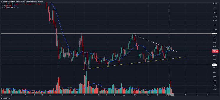 At the time of writing, Chainlink crypto against the USDT is trading at $7.6 mark at the time of writing .altcoin is again moving lower due to aggressive sell-off on September 28. This day was extremely volatile in the last 60 days, showing a bear’s presence in the market. Thus Chainlink crypto belonging to the Bitcoin pair is down 2.6% at 0.0003923 satoshis.