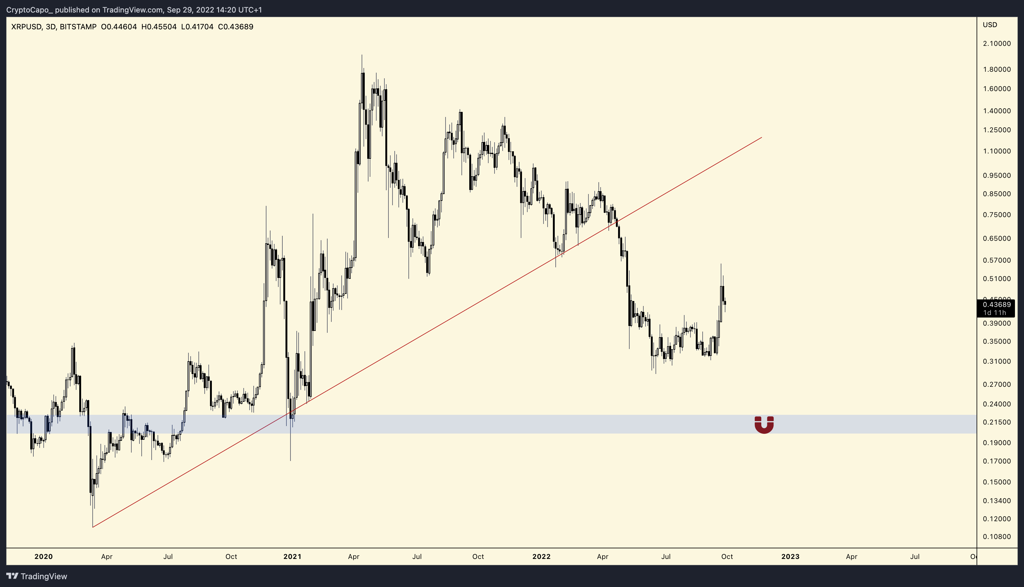 According to a chart shared by Capo, XRP appears poised to plunge to its high timeframe support at $0.20.