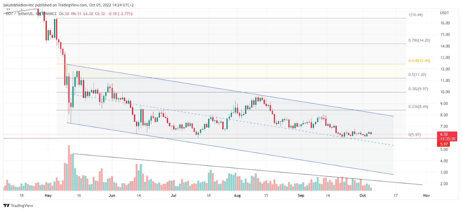 Polkadot reaches support at $6