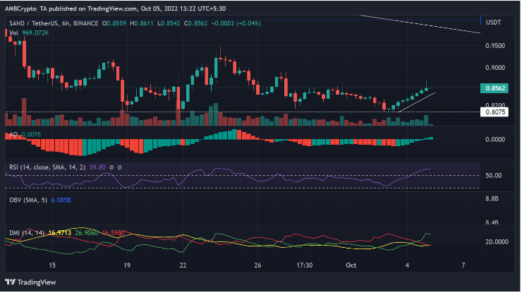 The token responded positively as it showed a considerable price movement. As of this writing, according to tracking from CoinGecko, SAND is trading at $0.8644.
