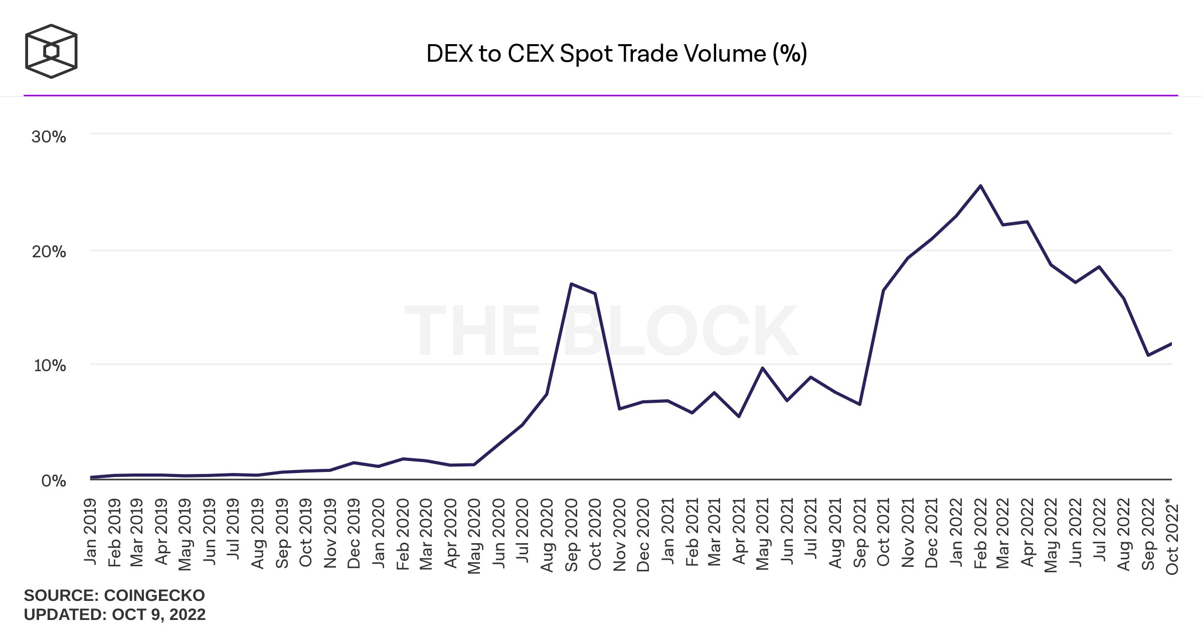 “In fact, the ratio of DEX volume to centralized exchange spot volume is higher than it was this time last year mid bull run. There is clearly a consistent underlying demand to gamble in the crypto casino.”