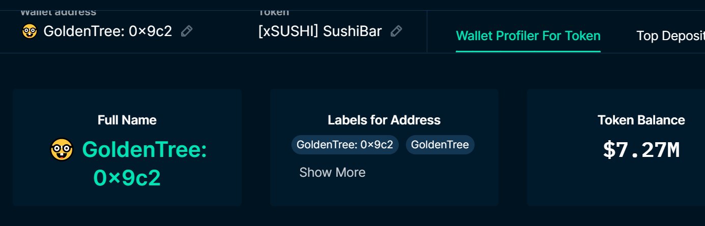 “Next, [$47 billion] asset manager GoldenTree has taken a $7.27 million position in Sushi. Expressing commitment by publicly sharing their wallet and intentions to make changes to turn around the protocol with a post in the Sushi forum.”