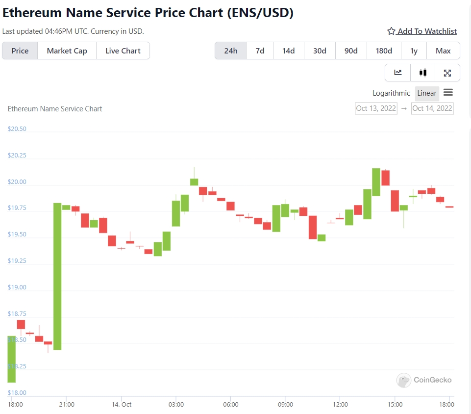 ENS is now up 11% in the last 24hrs at the time of writing and nearly 12.5% on the seven-day chart.