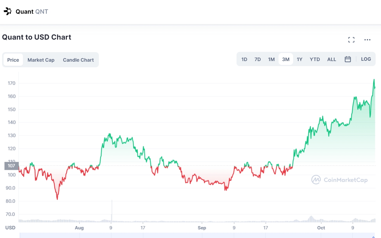 Quant has continued to push for its use in central bank digital currencies (CBDCs) and increased chatter around the implementation of that technology appears to be driving its growth.