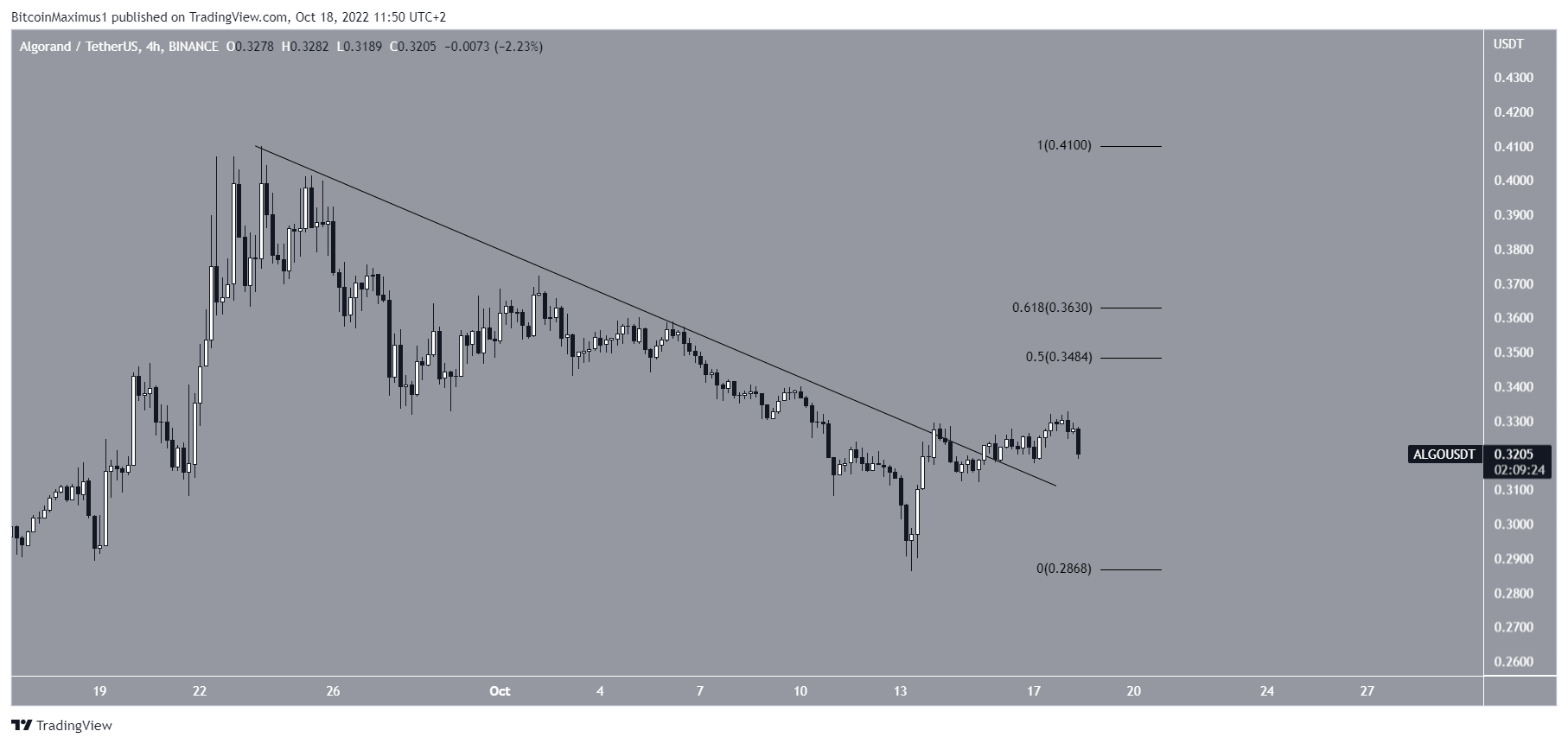 Algorand price created a bullish candlestick on Oct. 13, but this was not sufficient in initiating a bullish reversal. A breakdown from the current pattern is still expected.