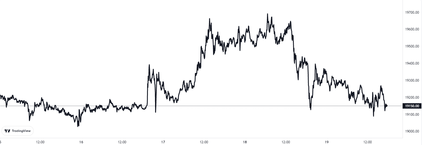 At the time of writing, Bitcoin’s price floats around $19.2k, up 1% in the last seven days. Over the past month, the crypto has lost 1% in value.