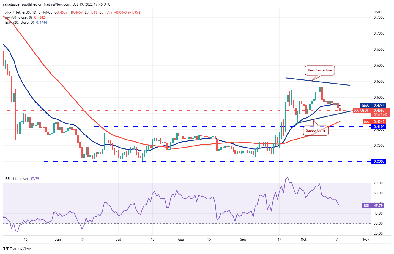XRP (XRP) recovered and closed above the 20-day EMA ($0.47) on Oct. 17 but the bulls could not build upon this advantage. This shows that bears are selling on rallies.
