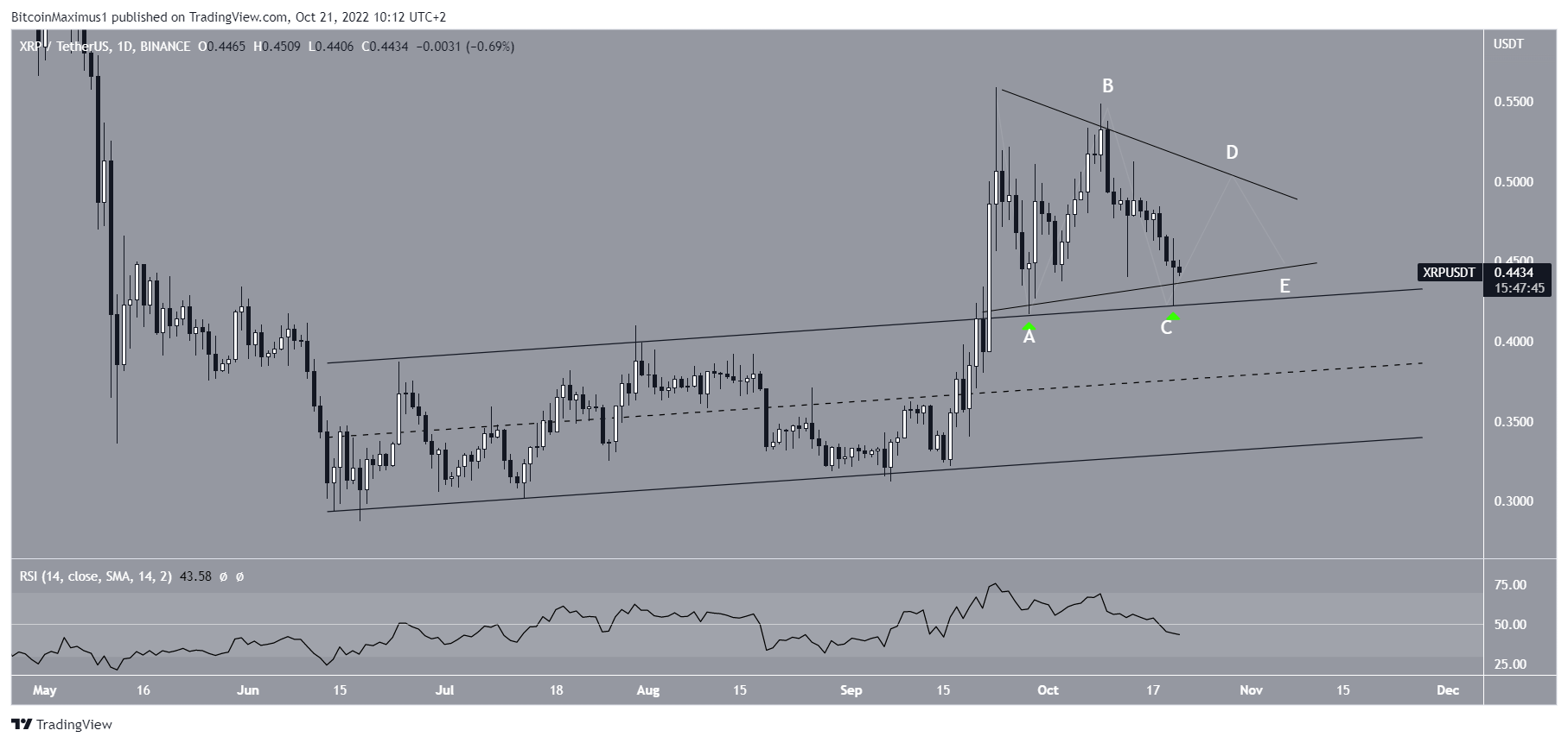 The XRP price is expected to break out from the current triangle pattern after consolidating for a short period of time. It’s unclear if it will be able to reclaim the long-term $0.60 resistance area after.