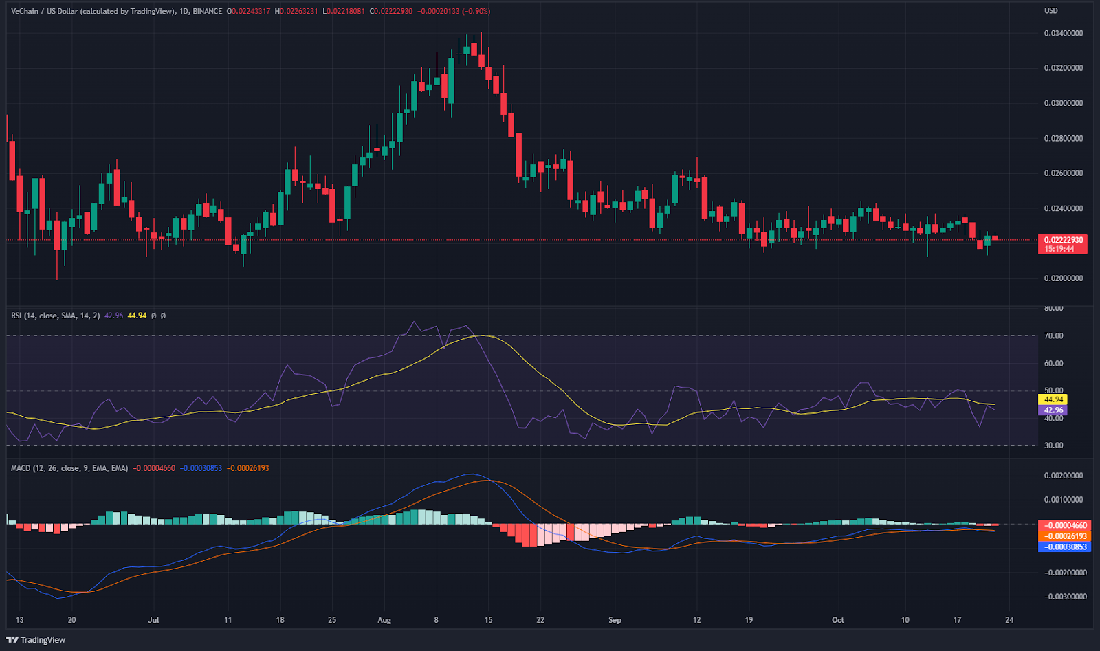 Amid the wider market turbulence going on in the market, Vechain has been put under immense pressure by the sellers. The asset has been unable to attract the requisite number of buyers and looks on course to continue on its downward trajectory.