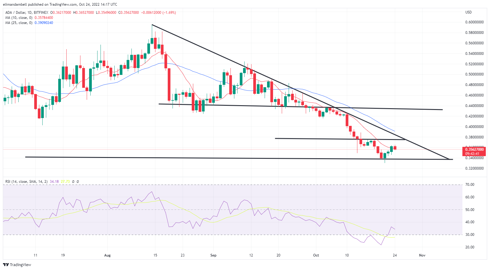 Looking at the chart, the aforementioned resistance of $0.3755, which was last hit on October 18, and seems to be the target for current bulls.
