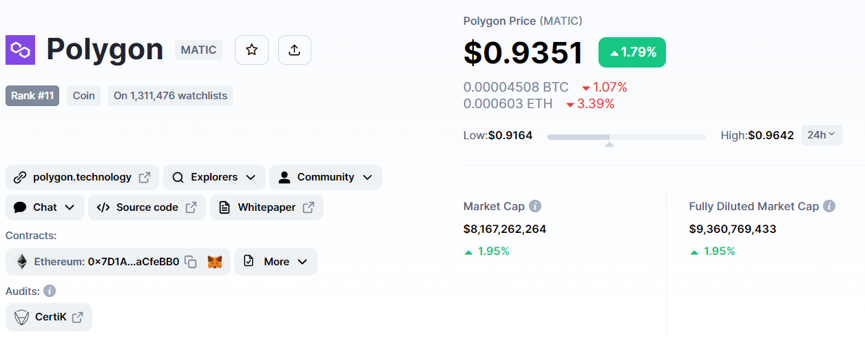 CoinMarketCap currently ranks #11, with a live market cap of $8 billion. There are 8,734,317,475 MATIC coins in circulation, with a maximum supply of 10,000,000,000 MATIC coins.