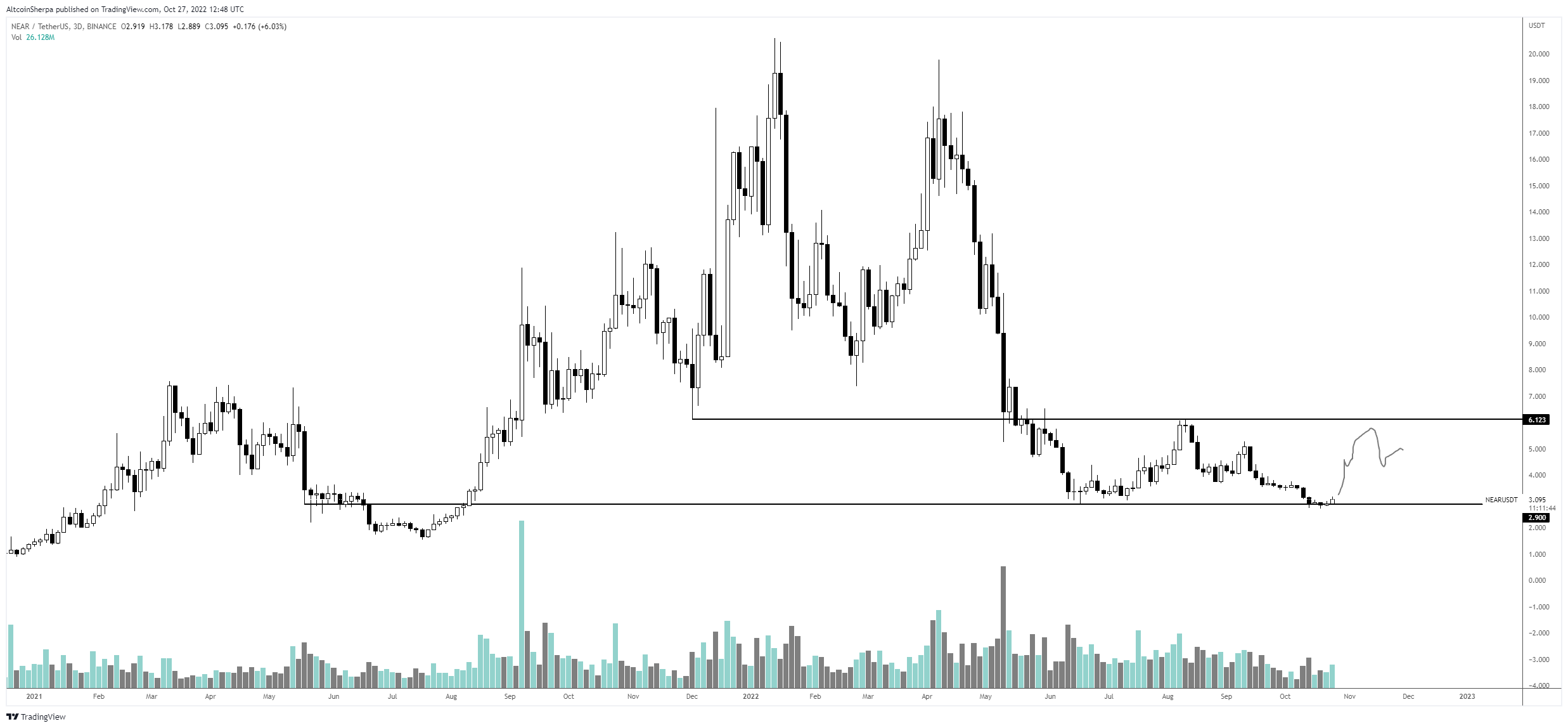 NEAR is moving for $2.99 at time of writing, a 2.7% dip on the day.